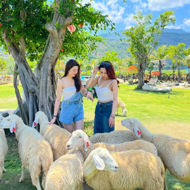 Chuyến đi của chúng ta bắt đầu từ Đồng Cừu. Một địa điểm du lịch mới nổi với những chú cừu trắng muốt đáng yêu. Cảm giác như lạc vào một vùng quê châu Âu thanh bình, bạn có thể thoải mái chụp hình cùng những chú cừu. Tận hưởng không khí trong lành và khám phá những góc sống ảo tuyệt đẹp.